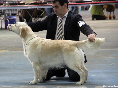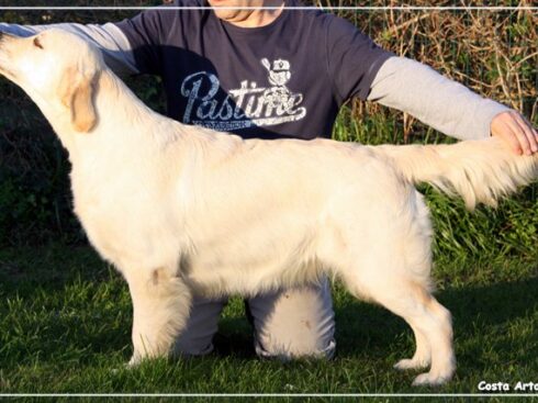 Costa Artabra Seabreeze , Bris hija de nuestros Golden Retriever Kiss y Rachel. Escogida entre 9 hembras de la camada, pronto destacó en las exposiciones, ganando el punto obligatorio de Portugal en La Torre de Belén (Lisboa) siendo muy joven. Se proclamó Campeona Internacional de Exposiciones en Francia, junto con el «primo» Bel en una exposición donde se llevó también la raza.