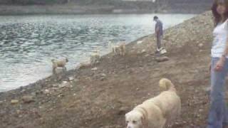 Cova jugando con los golden.
