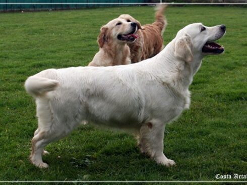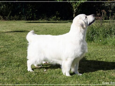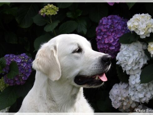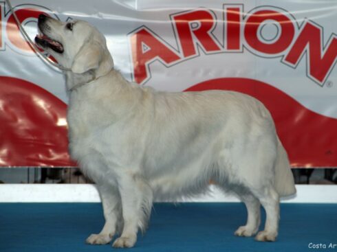 En sus tiempos era una golden retriever que siempre quedaba bien en las exposiciones, era un seguro de vida llevarla. Su mayor pasión sin duda, el mar, como casi todos los ártabros. Hoy vive plácidamente su retiro en casa enseñándole a los más jóvenes como hay que comportarse. A ella le debemos poder tener en casa a su hija Bris, que tantas alegrías nos ha dado en el ring.